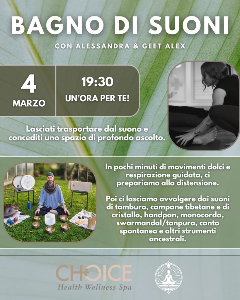 Attraverso vibrazioni avvolgenti di campane tibetane, canto spontaneo, strumenti ancestrali e frequenze armoniche, il corpo e la mente potranno sciogliere tensioni e ritrovare equilibrio.